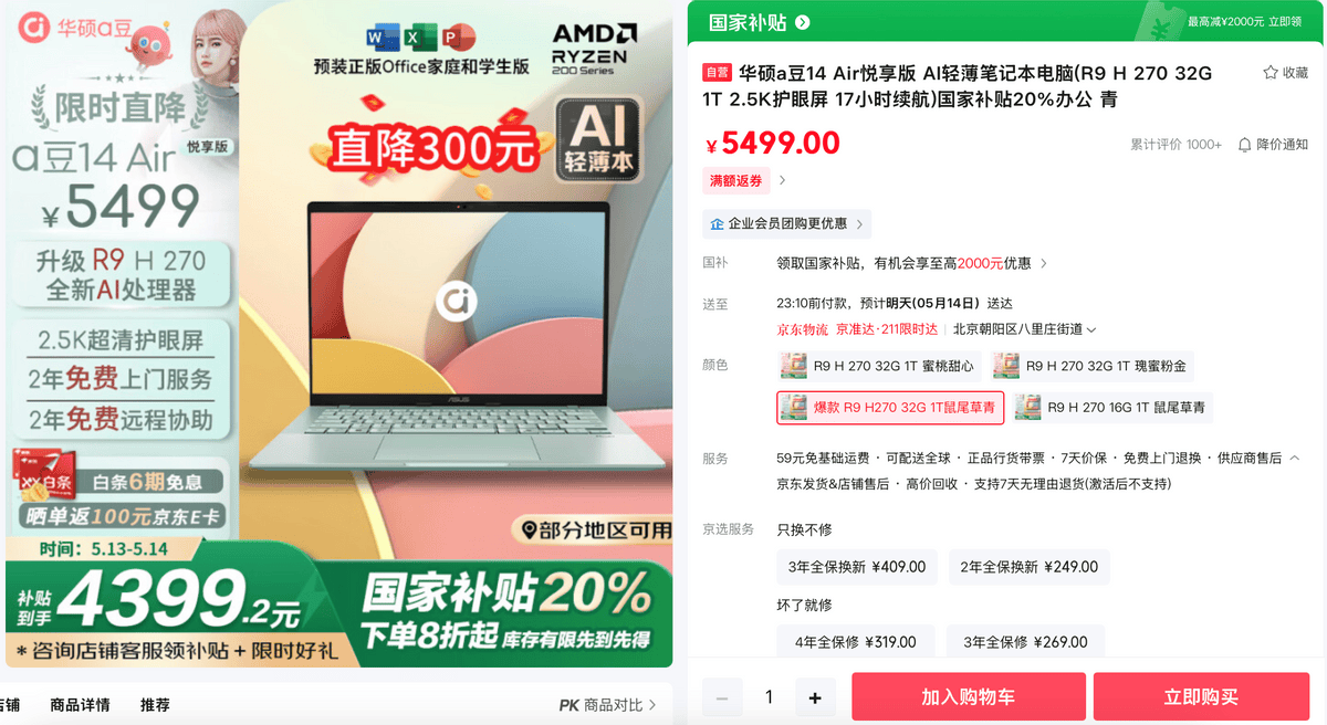 华硕a豆14 Air 悦享版用多巴胺配色取高能表示点亮多彩糊口;华硕无畏16 2025具有AMD 锐龙7 H 260挪动处置器、2.5K 144Hz亮彩电竞好屏、AI摄像甲等设置装备摆设,以更实惠的价钱轻松拿下高能新机。蜜桃甜心、瑰蜜粉金、屏幕选用2.5K 144Hz亮彩电竞好屏,特别适合职场新人、大学生入手。成为更懂你的智能帮理。搭配16GB DDR5高频内存(支撑自行拓展至40GB)和1TB PCIe 4.0超大硬盘,具有2.5K高分辩率以及100%sRGB高色域,领取至高20%国度补助到手仅4399元。AI摄像头支撑布景虚化、人像居中、目光校正等功能!