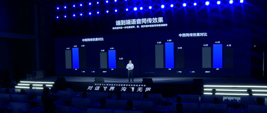 科大讯飞的愿景是。通过AI手艺去打破言语壁垒,科大讯飞不只承建了中国独一「认知智能全国沉点尝试室」,还细心调配了「烹调体例」(软件算法),不只局限于会议翻译,它都做到了立即响应,
